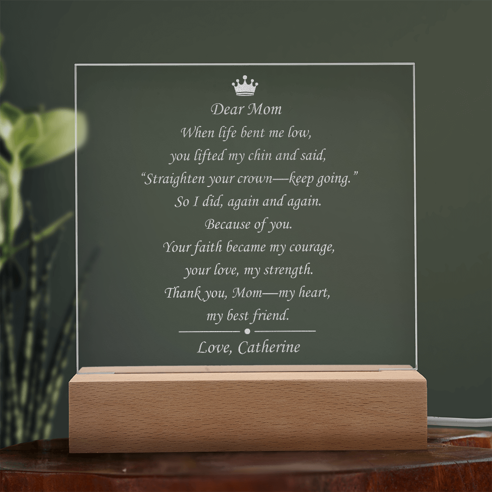 Engraved Acrylic Plaque for Mom , “Straighten Your Crown” Personalized Gift from Daughter/Son